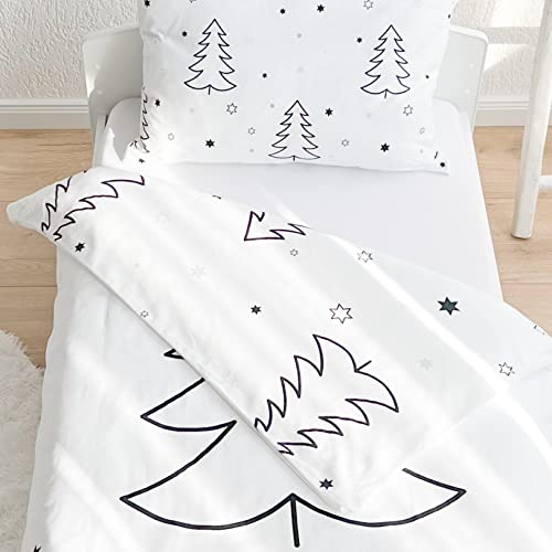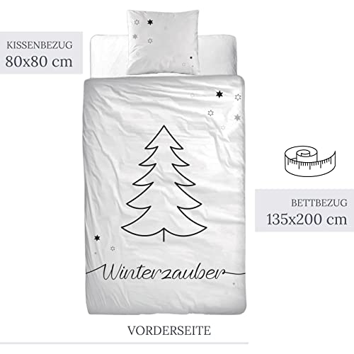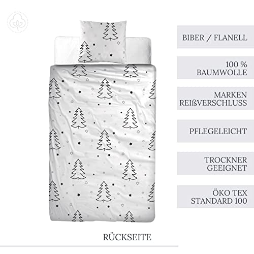MTOnlinehandel TRAUMHELDEN Bettwäsche 135×200 Biber, Soft, weich & kuschelig, Weihnachten, Sterne, Tannenbaum & Winterzauber, 1 Kissenbezug 80×80 + 1 Bettbezug 135×200