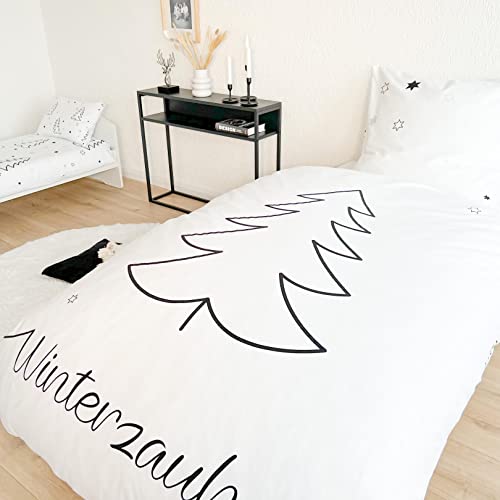 D E S I G N : zauberhafte Winter-Bettwäsche ” Winterzauber Sterne & Tannenbaum ” zum kuscheln, träumen & wohlfühlen · Wende-Motiv · ideal für kalte Herbst- und Wintertage · das Motiv bringt Weihnachtsstimmung in Ihr Schlafzimmer