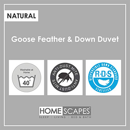 Natürliches Luxus-Federbett 13,5 Tog – entspricht Wärmestufe 4/Wärmestufe 5. Füllgewicht 1485g, Gesamtgewicht: 2500g.