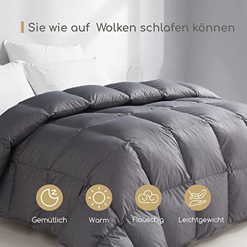 Homyrium Daunendecke 135×200 Ganzjahresdecke Komfort Bettdecke 135×200 Daunen Warm Federbett Federdecke – Oeko-TEX und RDS Zertifiziert (Grau,Füllgewicht 700gr Natur Daunen und Federn)