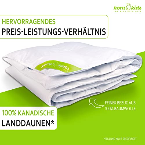 Koru Kids® Daunendecke 135×200 cm – 100% kanadische Landdaunen – Bettdecke Kinder – Federbetten 135×200 Daunen – Made in Germany – Ganzjahresdecke für Erwachsene und Kinder