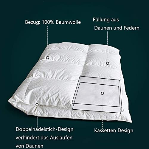 Specification: Premium Komfort Daunendecke, Bettdecke, 100% Baumwolle, Hochwertige Füllung: 80% Gänsedaunen, Füllgewicht 1200 Gramm, 155×220 cm