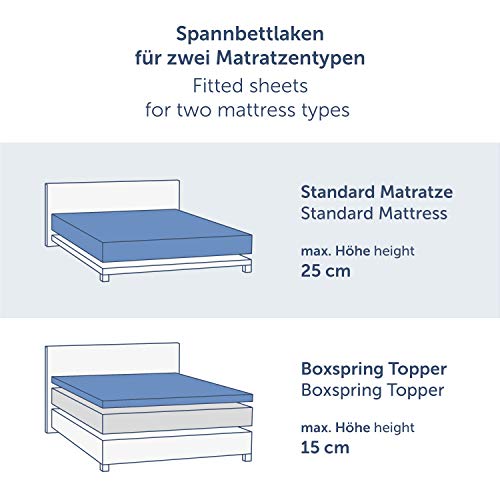FÜR MATRATZEN TOPPER BIS 15CM HÖHE: Passend für Boxspring Topper mit den Maßen 90x200cm, 100x200cm, 120x200cm, 140x200cm, 160x200cm, 180x200cm, 200x200cm und einer Steghöhe bis 15cm.