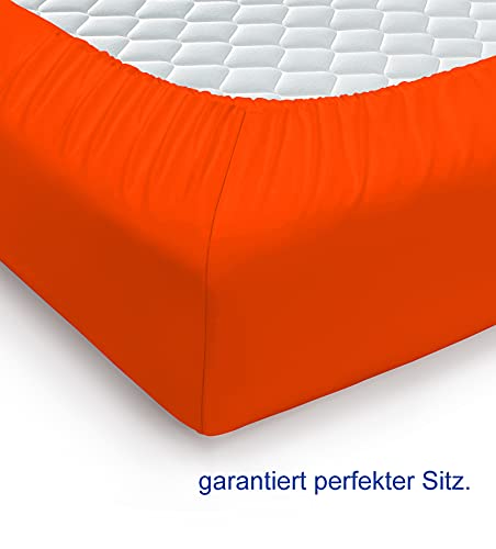 CAMRY Spannbettlaken 180×200 – 200×200 cm, Baumwolle Jersey Spannbetttuch Bettlaken, Orange, Oeko-Tex Standard 100