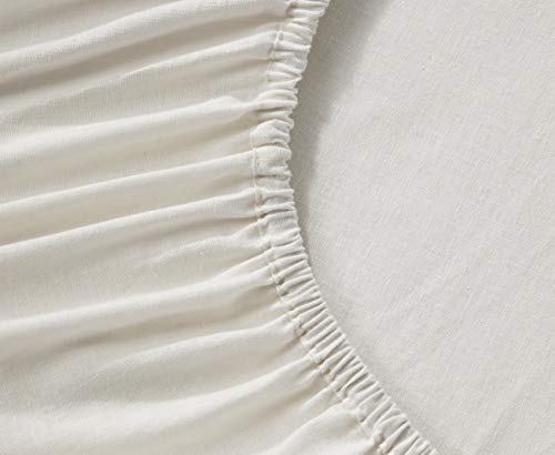 DAPU Spannbettlaken Baumwolle Leinen, 160×200cm+30cm Spannbetttuch mit Öko-Tex 100, 55% französische Leinen 45% langstapeliges Baumwolltuch, Hohe Matratzenbezug Off Weiß