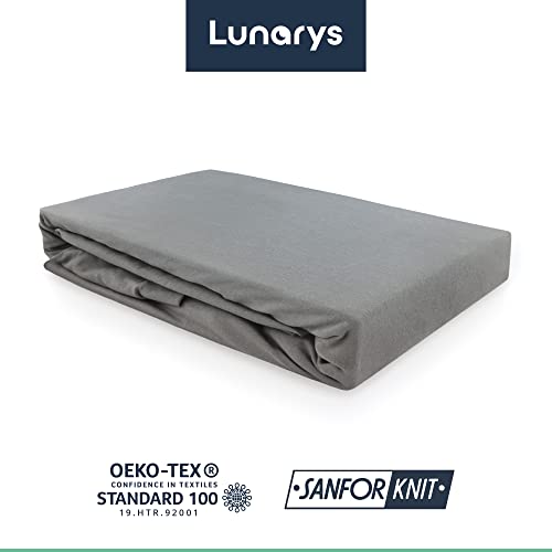 Lunarys® SleepRoyal Luxus Spannbettlaken 160×200 cm – Silbergrau – 250 g/m² Premium Bettlaken – 40 cm Steghöhe – für hohe Matratzen, Boxspringbett / Matratze + Topper & Wasserbett – Stretch Jersey