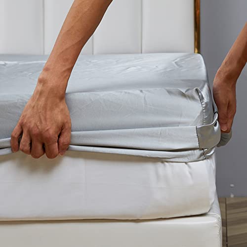 Spannbettlaken Bettlaken 180×200 Satin Grau Hellgrau Uni Muster Boxspringbett Topper Frottee Seide Glänzend Bettlaken Spannbetttuch 180 x 200 cm Spannbetttücher für Hohe Matratze bis 25-30 cm