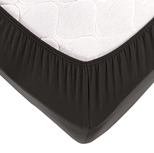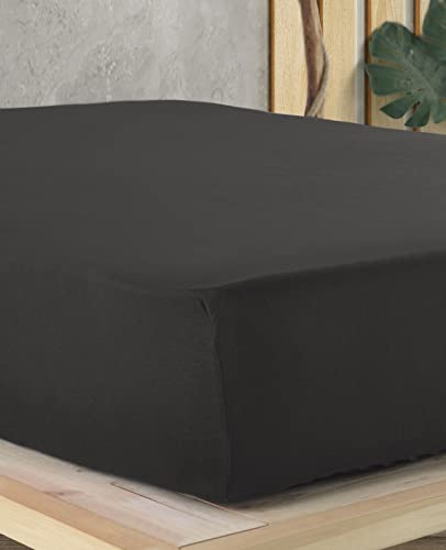 Vency Premium Jersey Spannbettlaken Spannbetttuch bis 30 cm Matratzenhöhe Bettlaken 100% Baumwolle ÖKO-TEX (140×200 cm, Schwarz)