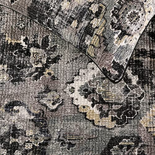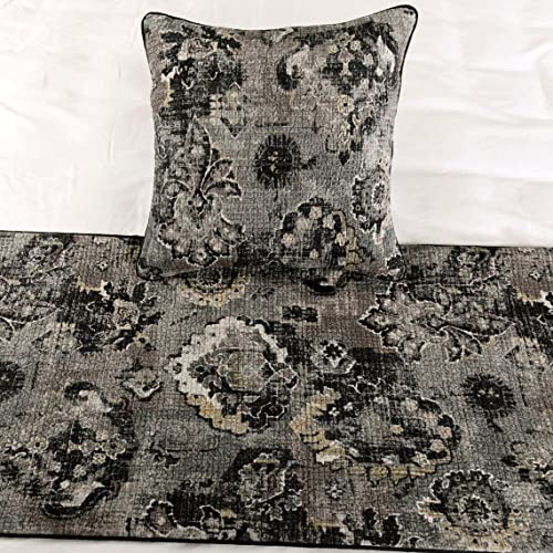 Specification: Dekorativ Schwarzgrau 170 x 45 cm Bettläufer mit Kissenbezug, Samt Damast mit Quasten Bett Schal, Abstrakt Modern – Paved Damask