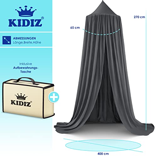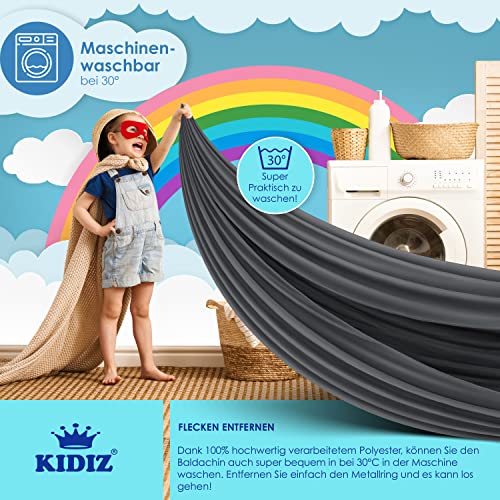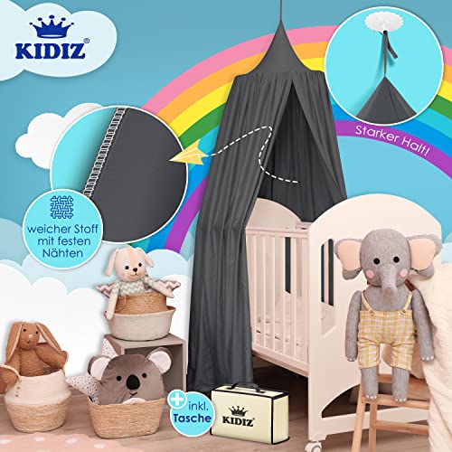 KIDIZ® Baldachin Kinderzimmer Betthimmel babybett für Schlafzimmer Inkl. Aufbewahrungstasche | ohne Bohren | Saumlänge ca. 270cm | Moskitonetz Insektenschutz Moskitonetz Kinder Spielzelte Anthrazit