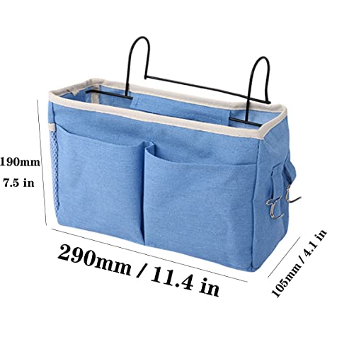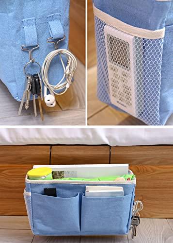Bett Organizer, 2 Stücke Betttasche zum Einhängen mit Drahtrahmen, Betttasche zum Einhängen, Betttaschen Hochbett Hängetasche Aufbewahrungstasche, für Magazin, Spielzeug, Handy, Kopfhörer(Blau & Weiß)