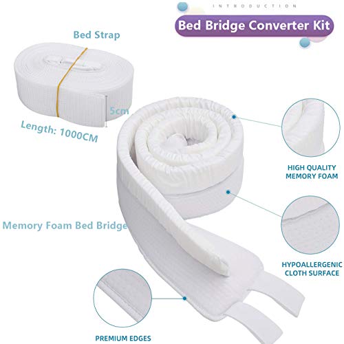 Specification: Vivilineneu Liebesbrücke 20 X 200cm für Matratzen Bettbrücke Ritzenfüller Matratzenkeil mit Spanngurt Twin to King Converter Kit (Weiß)