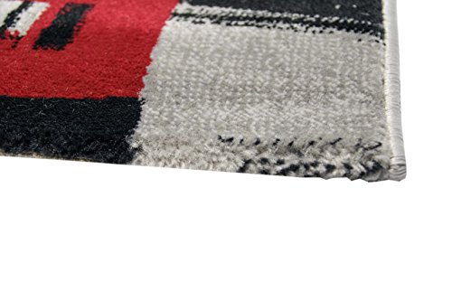 Specification: Designer Teppich Moderner Teppich Wohnzimmer Teppich London Motiv Creme Grau Rot Schwarz Größe 60×110 cm