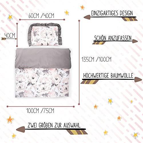 Generic Bettwaren-Sets für Kinder Baby II Mädchen Jungen II Baumwolle 100% II Hochwertiger (Peony/Dunkelgrau, 75×100 / 30×40)
