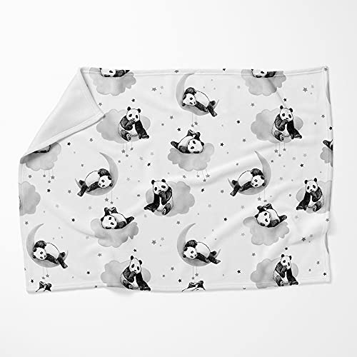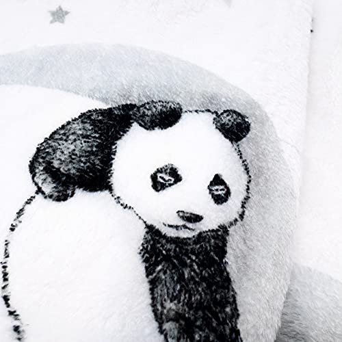 Specification: Happy Linen Company Mädchen/Jungen Tagesdecke – mit niedlichen Panda-Motiven – Kunstfell/Fleece – Weiß-Monochrom – Groß