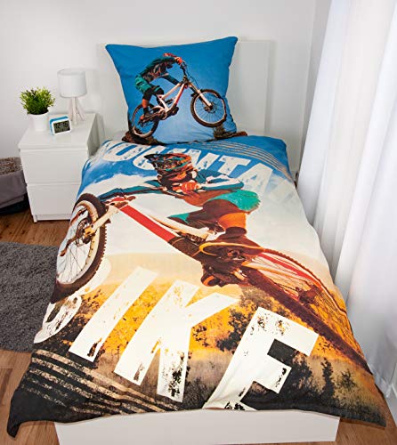 Die ideale Geschenkidee für jeden Anlass: Atmungsaktive Jugendbettwäsche mit sportlichem Mountainbike Wendemotiv für sportbegeisterte Draufgänger