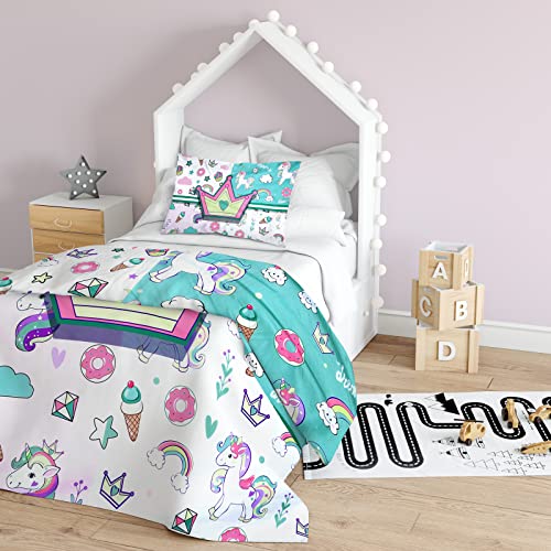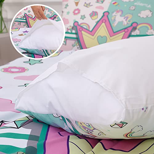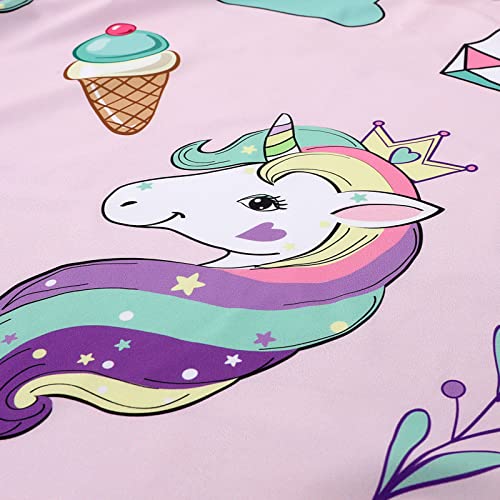 Kinder Einhorn Prinzessin bettwäsche Set 135×200 Mädchen Cartoon Bettbezug für Kids Microfaser Himmlische Qualität Betten Set mit 1 Kissenbezug 50x75cm Einzelbett 2 teilig, Rosa