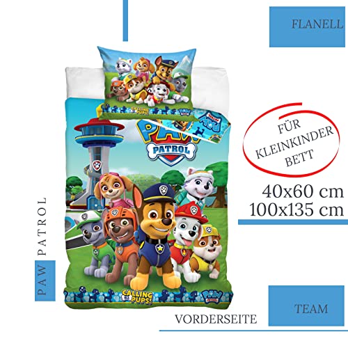 MTOnlinehandel Paw Patrol Bettwäsche Bettbezug 100×135 40×60 Flanell · Skye, Chase und Team Kinderbettwäsche für Mädchen und Jungen · 2 teilig