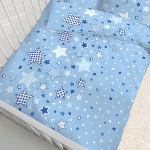 Specification: Sterne Fein Biber Baby & Kinder Jungen Bettwäsche, Stars Sterne & Sternchen blau, himmelblau – 2-teilig Kissenbezug 40×60 + Bettbezug 100×135 cm – 100 % Baumwolle
