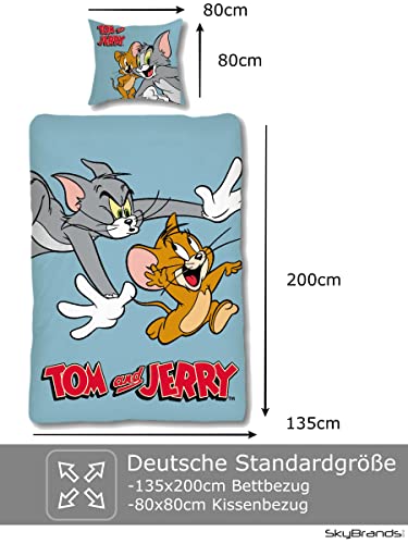 Tom und Jerry Bettwäsche Tom & Jerry 135×200 80×80 Kissen-Bezug [Baumwolle] Kinderbettwäsche Set Wendemotiv Öko Tex Standard Deutscher Händler