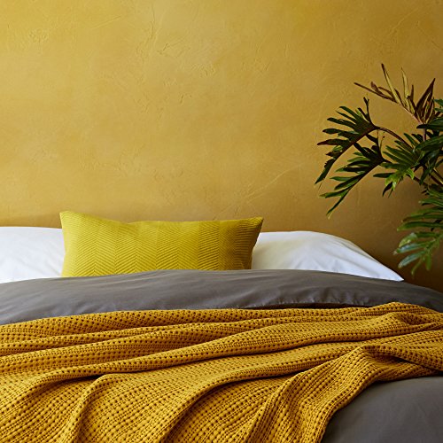 Specification: URBANARA Tagesdecke Lixa – 100% Reine Baumwolle, Senfgelb, texturiertes Fischgrat – 275 x 265 cm, Überwurf, Decke, Bettüberwurf, Sofaüberwurf, Baumwolldecke
