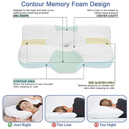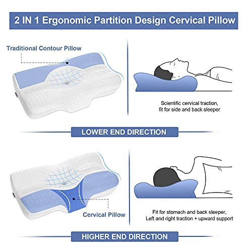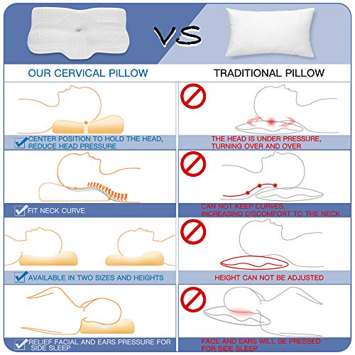 Specification: Elviros Orthopädisches Kopfkissen Memory Foam Kissen Ergonomisches Kissen für Nackenschmerzen Schlafkissen, Nackenkissen, Nackenstützkissen Seitenschläferkissen Bauchschläferkissen, 58 x 12/10 x 38 cm
