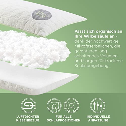 Kopfkissen 40 x 80 Aloe Vera – Kühl im Sommer, Warm im Winter – No.1. Seitenschläfer Kissen mit beruhigender Wirkunh – Sehr Atmungaktiv (AloeVera)