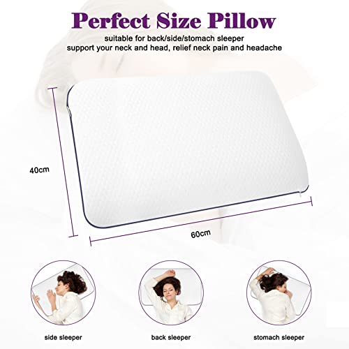 Nackenstützkissen Memory Foam Kopfkissen Schlafkissen: Ergonomisches Gelschaum Viskoelastisch Weich Hypoallergen Schaumstoff Kissen Orthopädisches Seitenschläferkissen 60 X 40 – Weiß