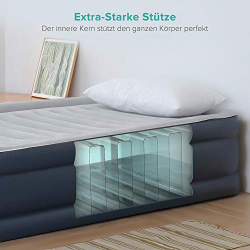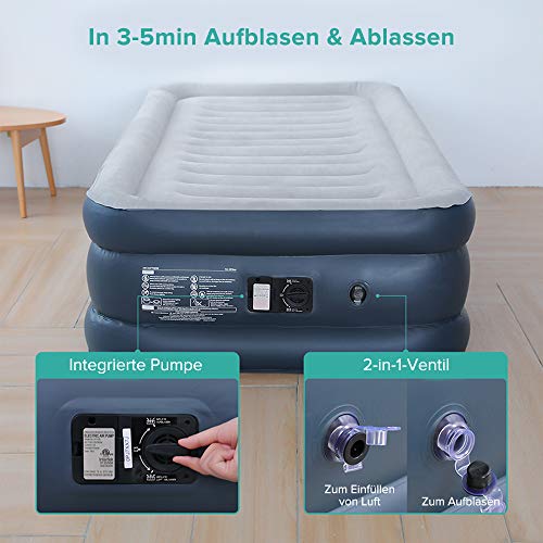 【Integrierte elektrische Pumpe】 Schnelles, problemloses Aufblasen & Ablassen des Luftbetts per integrierter leistungsstarker Pumpe
