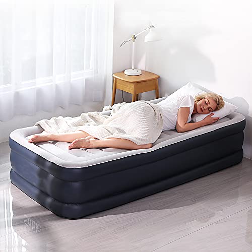 Aufblasbare Matratze, Luftbett mit eingebauter elektrischer Pumpe, integrierte erhöhte aufblasbare Matratze für Übernachtungsgäste, geeignet für Twin Size für 1 Person – 203 x 99 x 46 cm