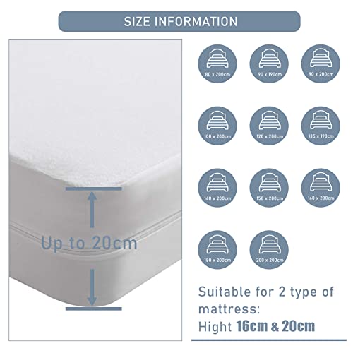 Specification: Beedsooth wasserdichte Matratzenbezug mit Reißverschluss, Gegen Milben Matratzenschoner, Hygienische und Atmungsaktive Matratzenauflage Höhe 16cm -90x200cm